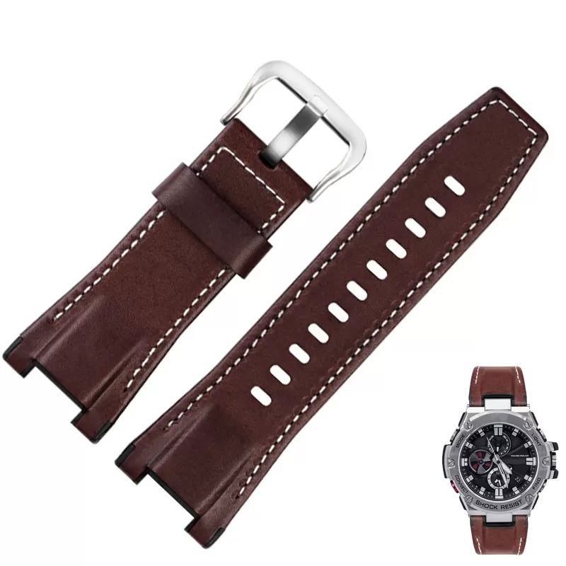 Brown & White Strap Band for Casio GST Series in Genuine Leather – 26mm