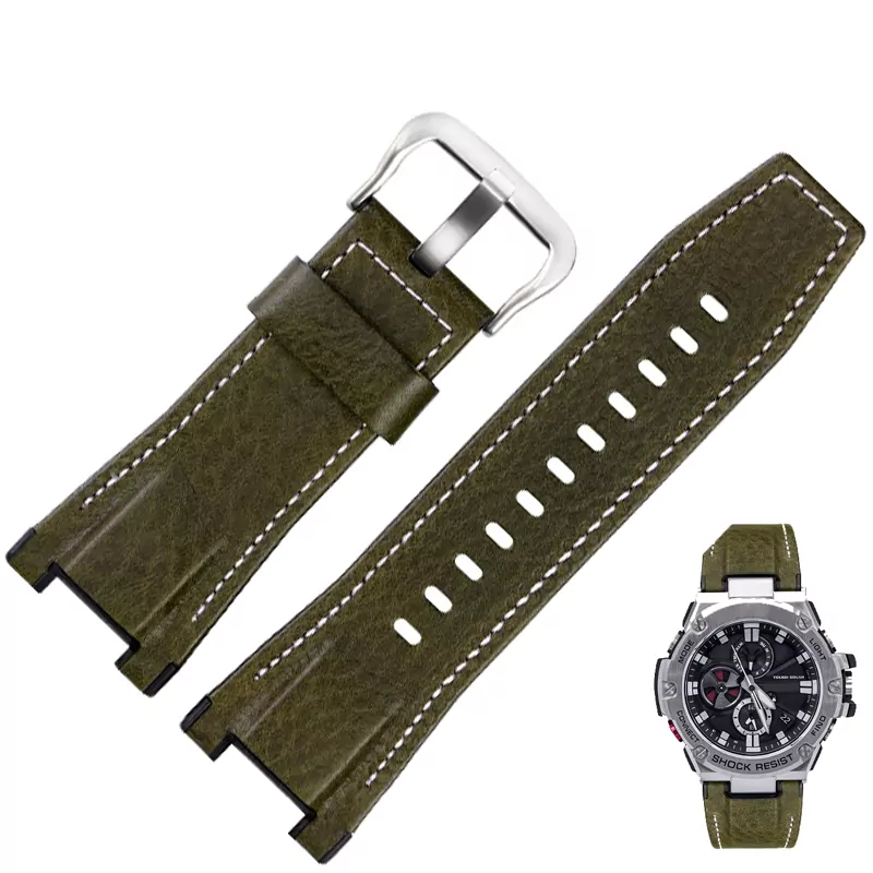Green & White Strap Band for Casio GST Series in Genuine Leather – 26mm