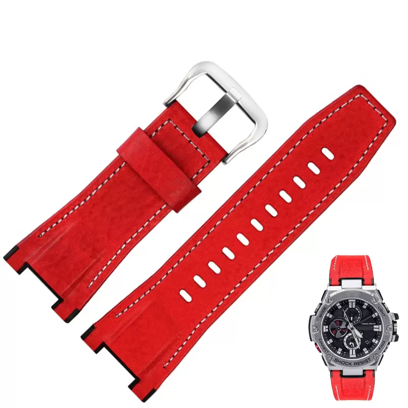Red & White Strap Band for Casio GST Series in Genuine Leather – 26mm