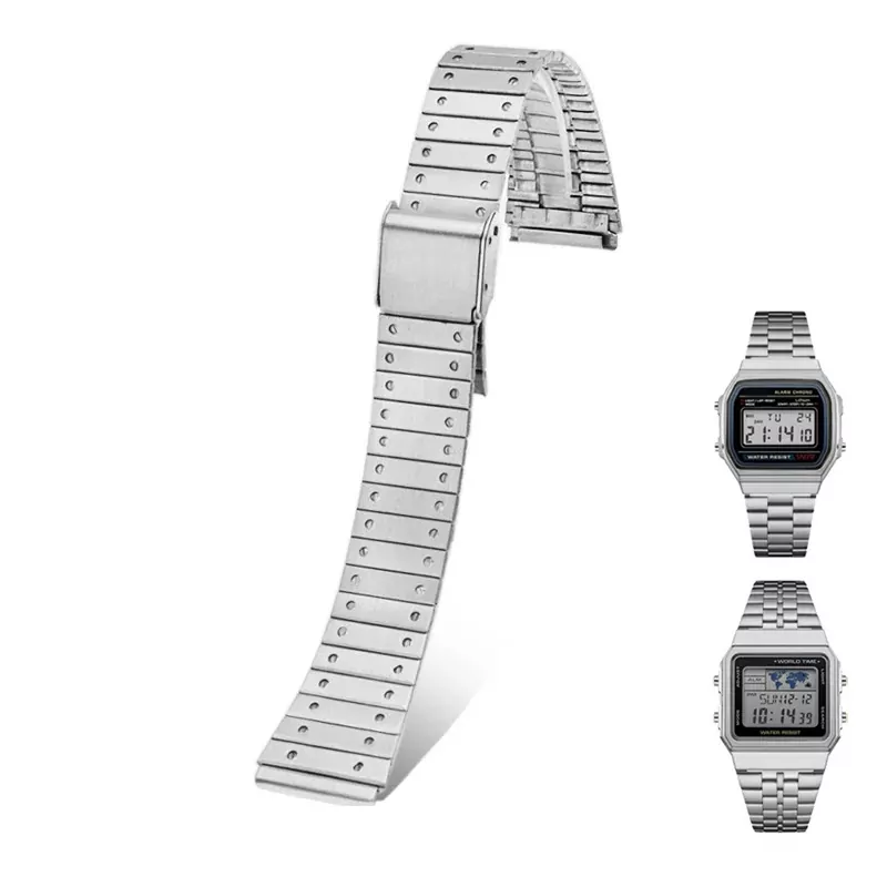 Silver Band Bracelet for Casio Vintage Digital Collection in Stainless Steel – 18mm