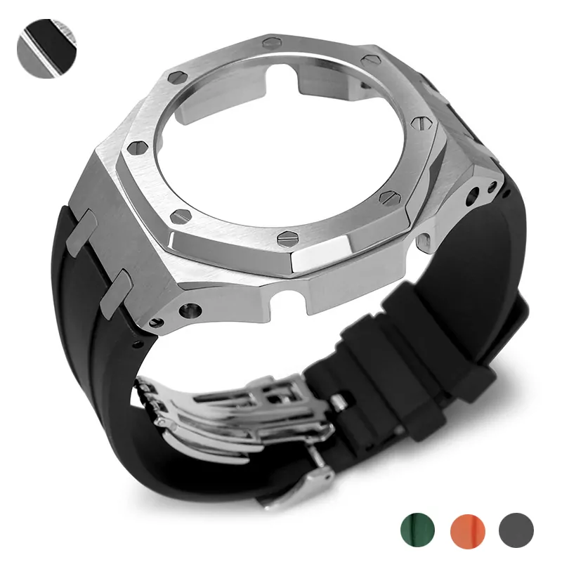 Silver Case & Rubber Strap Casio G-Stock GA-2100, 2110 Conversion Kit Royal Oak