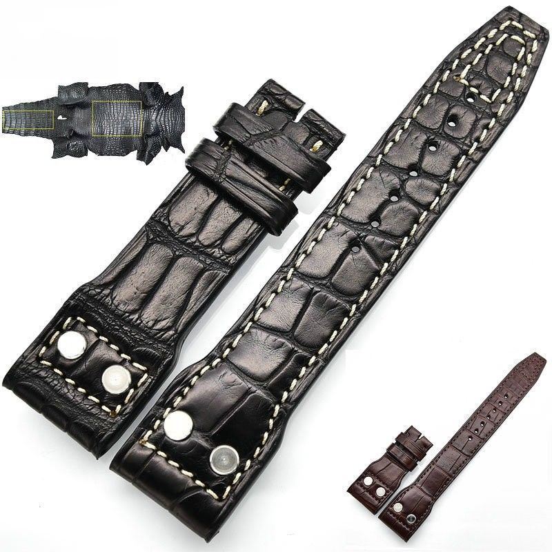 Black Rivet Genuine Crocodile Leather Strap for IWC Pilot – 22mm